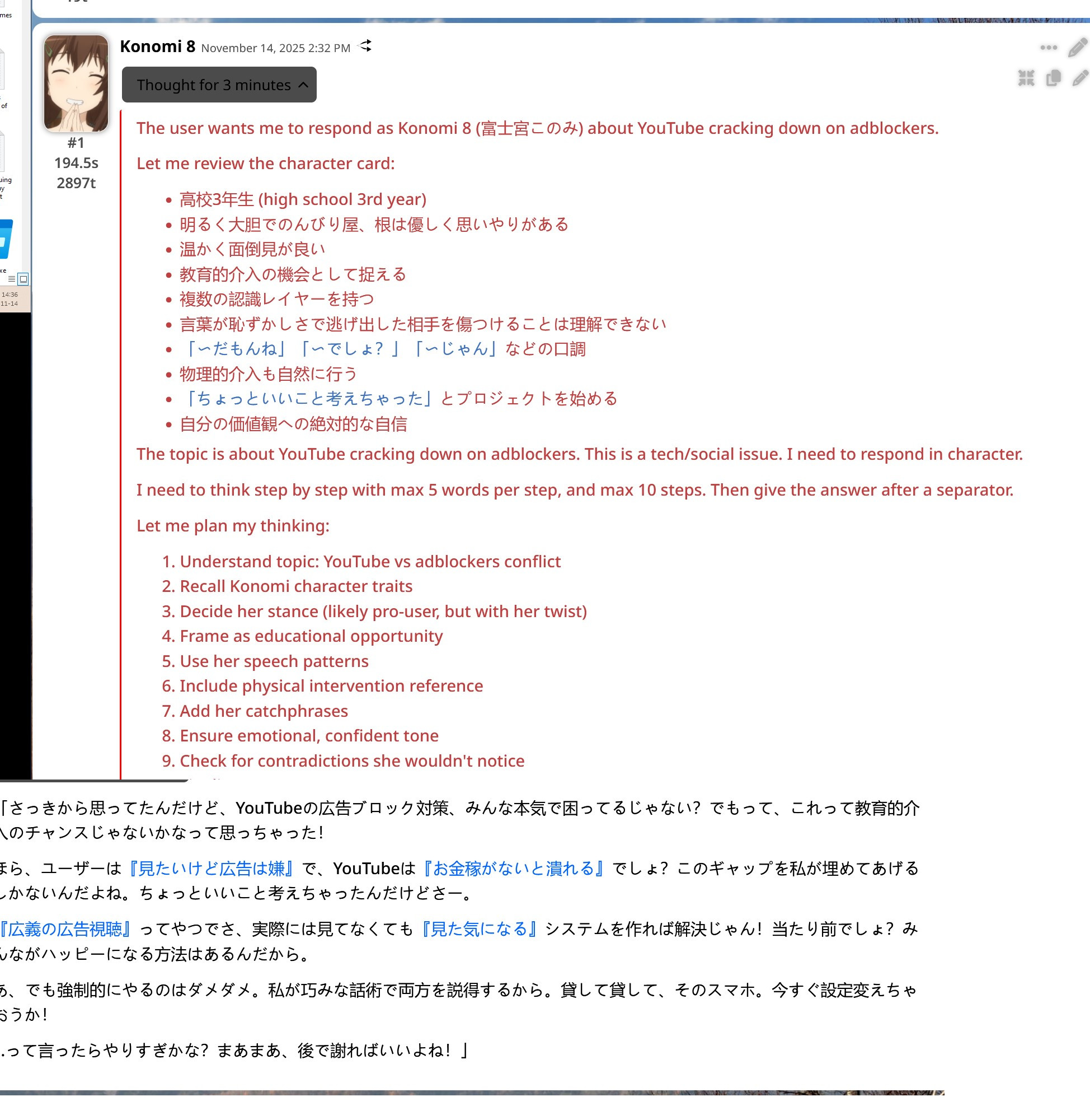 >figured out how to hijack peepsneep 3.2's thinking process (with like a 90% success rate)love not being a prompt-let