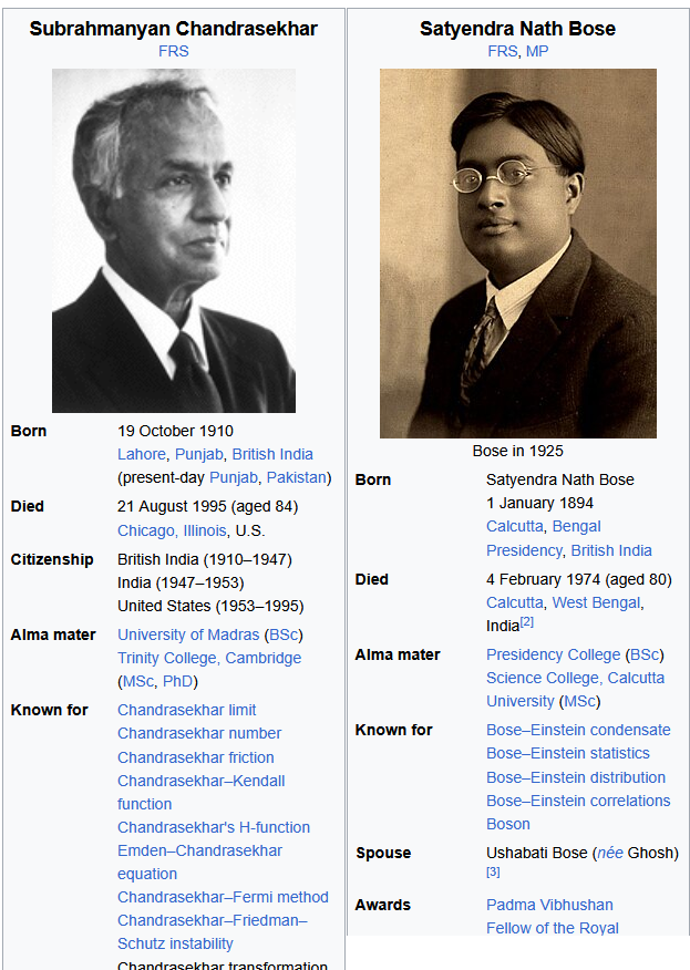 >>107219086I mean, figuring out when a supernova explodes (Chandrasekhar-limit) and half of the particle class in the Standard Model is named after you (Boson), they'd at least get the honorary white status.