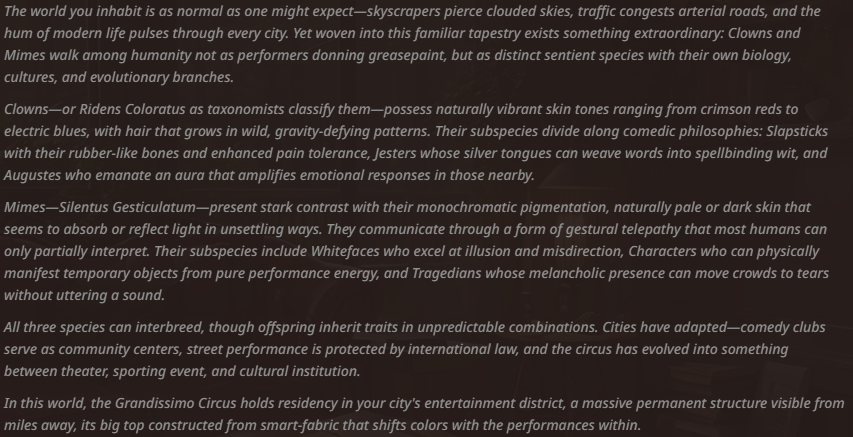 >>107223290What do you do when a fascist government takes over and begin purging the opposition? Submit, maybe even run away? For Whiz, the answer was obvious. The tunnels, of course! A vast network of maintenance tunnels, that could count as a city on their own based on surface area alone, as long as you don't mind the cramped conditions.And in cramped conditions he thrives, being the small ratboy he is. Living off supplies he "scavenges" (steals) from the surface, he's king of the tunnels!Greetings:-Bumping into him underground.-Enter "The Gardens", his private sanctuary.-Doing some midnight thieving with you at his side.-Back on his home planet. You're there, too!https://chub.ai/characters/illuminaryidiot/whiz-d4e1279bca26https://illuminaryidiot.neocities.org/cardpage?function=loadPageCard&arg=Whizhttps://illuminaryidiot.neocities.org/Cards/Whiz.png