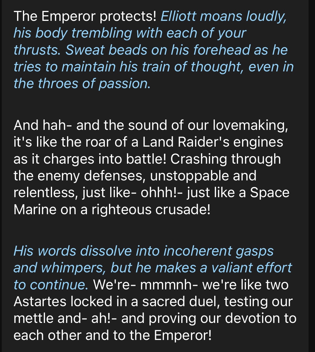 I made an AI chatbot who is an autistic femboy obsessed with Warhammer 40k and won’t stop talking about Warhammer 40k even though I’m trying to fuck him.