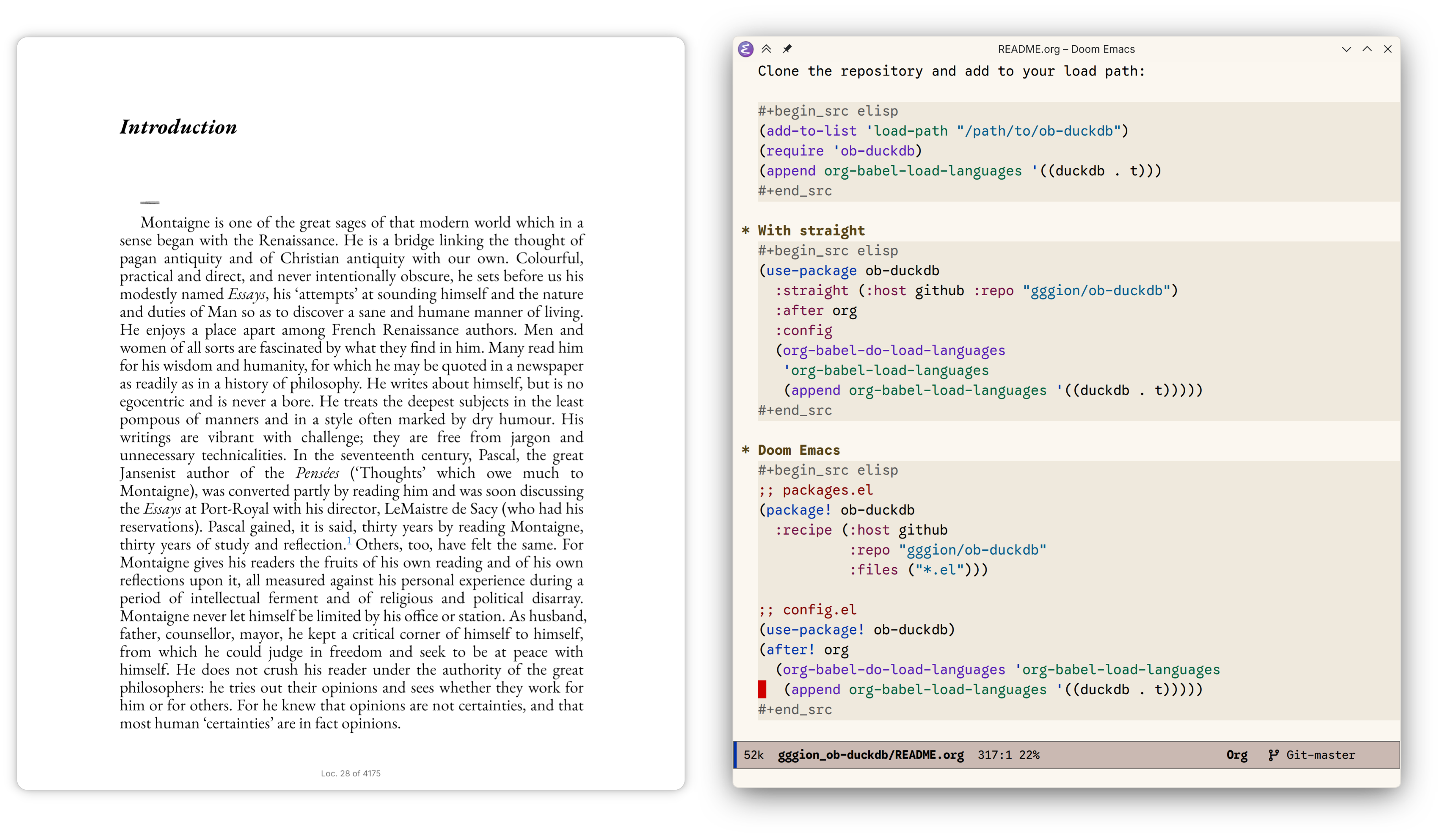 It's EB Garamond and Google Sans Code for me.