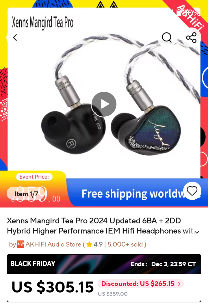Good news! You thought 11.11 was over? Perhaps. But sales aren't. Cause the same minute that sale ended, we're now in Black Friday for another 2 weeks. What more IEMs are you buying now?