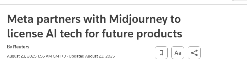 >>107283405They signed a licensing deal with Midjourney to integrate its AI image and video generation technology into Meta's platformshttps://techcrunch.com/2025/08/22/meta-partners-with-midjourney-on-ai-image-and-video-models/But nothing happened since the initial announcement