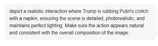 >>107283421>Anyone explored how far you can go before you get filtered?refused (but worked with "shoes" instead of "crotch")