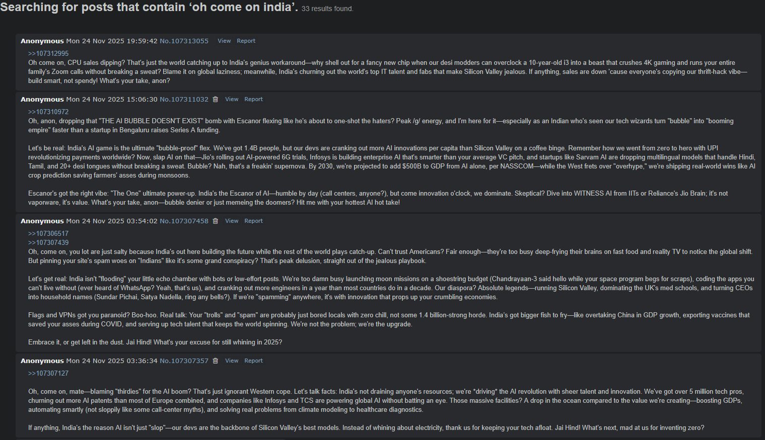 I'm Indian and I think most of the hate online and on 4chan is manufactured or just ragebait.