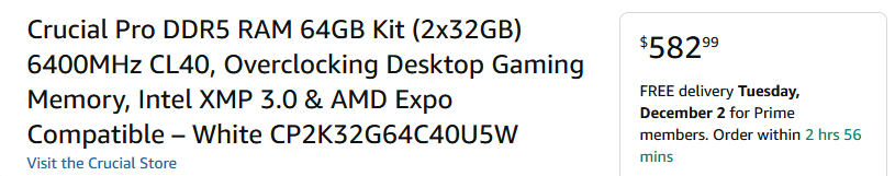 >Buy DDR5 6000 cl30 for $144