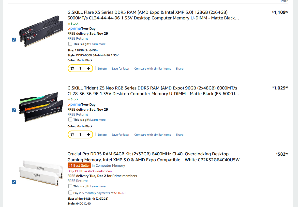 My old PC got damaged in a flood last week, so I have to build while RAM prices are doing whatever they are doing :)