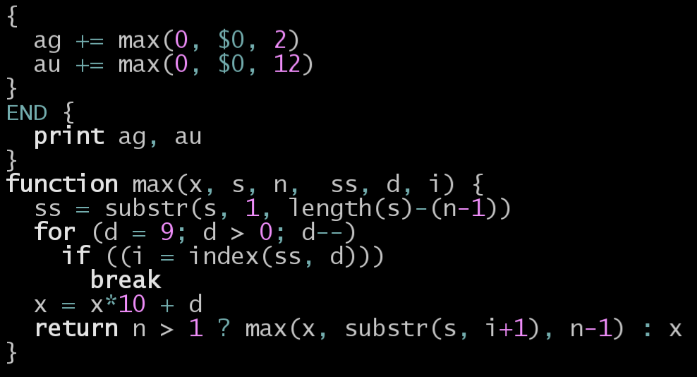 while(scanf("%ld-%ld,", &rangeMin, &rangeMax) != EOF){