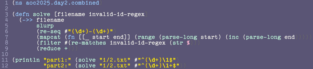long invID = 0, sNumberF = sillyNumber(upperHalf(rangeMin, div), div), sNumberL = sillyNumber(upperHalf(rangeMax, div), div);