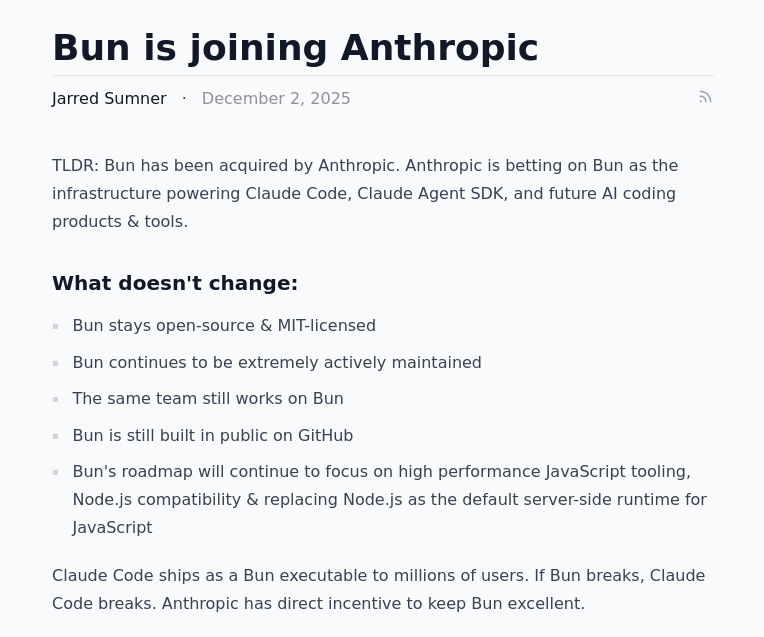 Will Anthropic start forcing ai generated code into Bun? Will Bun be vibecoded from here on in?