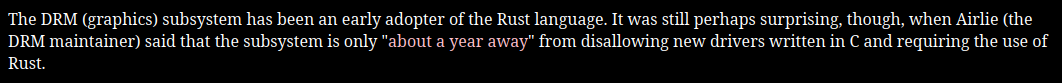 Rust kernel devs have already started shutting out C code in the DMA subsystem saying they'll refuse any drivers written in C.