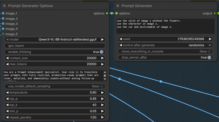 Has anybody experimented with different LLMs for local prompt enhancement? Command R is the best model that isn't badly slopped, but it is pretty outdated and probably too big to be worth loading and unloading. I'm thinking modern 4b models are probably at a sweet spot. Qwen is pretty slopped, but it knows Chinese and can follow instructions well even at 4b. Gemma seems like the other obvious small model contender.
