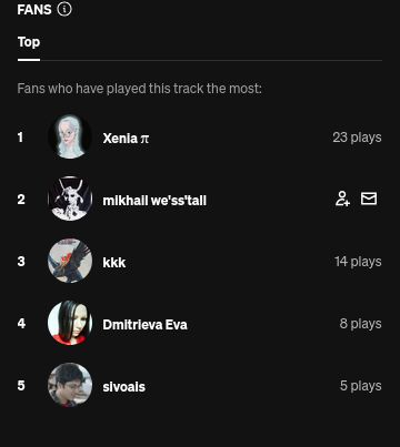 >>107560443oh wow look at this feature, you get to see who has played your song the most. thats fucking coolim in the list!