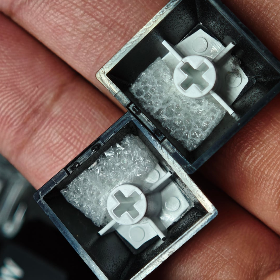 >>107560694Why not blu tack? Makes the key more dense than using foam, just don't add too much. The spring won't come back up from adding additional weight lol. I do this on "hollow" space bars; they're usually the best sounding key afterwards