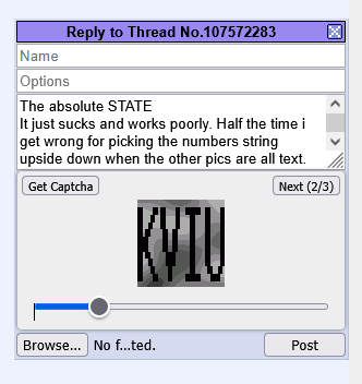 Reply captcha are easy but I'm pretty fucking sure OP catpchas arent generated correctly. It's impossible to make a thread rn.