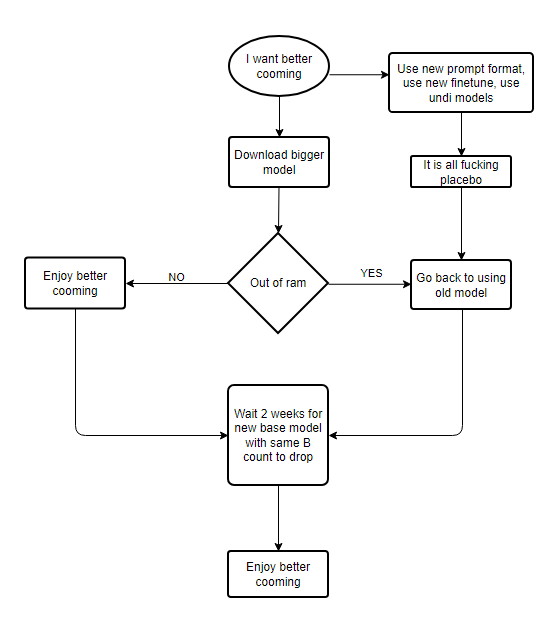 >>107585474>Didn't address anything I said.It is all shit. Just buy more ram to run a bigger model or wait for new model. Or try a Q1 Q2 quant. A big Q1 Q2 model is the only thing that gives a different feel you are looking for. For genuine improvement you need ram.