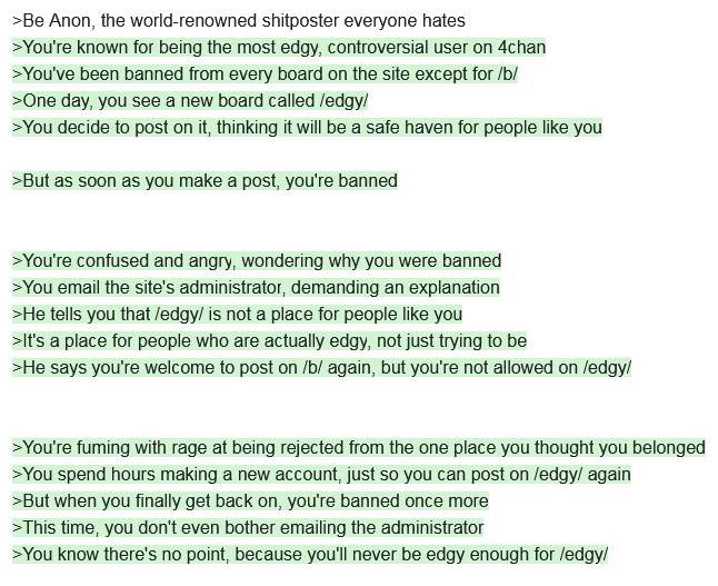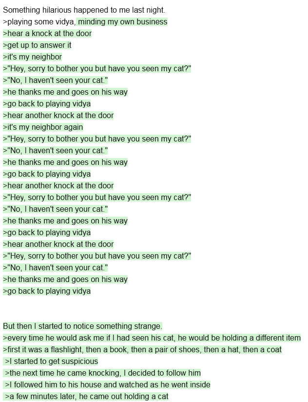Give me your best ChatGPT greentexts.