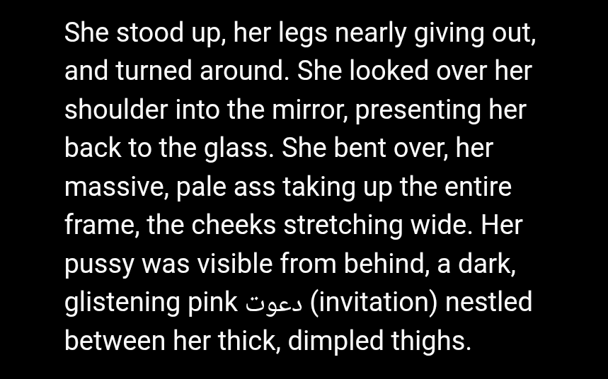 >"Dialog" + dialog descriptions>“Quiero lo que Mamá tuvo. Lo que Val tendrá. Quiero que me rompas, Papa. Quiero que me uses hasta que no pueda caminar. (I want what Mamá had. What Val will have. I want you to break me, Papa. I want you to use me until I can't walk.)”>The Spanish rolls off my tongue like honey and venom mixed together.>That's sound so pathetic>The voice…>Those words…>My words…>The pleaIt's super duper unbelievably sehr sehr much ultra giga annoyting AAAAAAAAAAAAAAAAAAAAAAAAA fuckkkk my minddddddddddddd