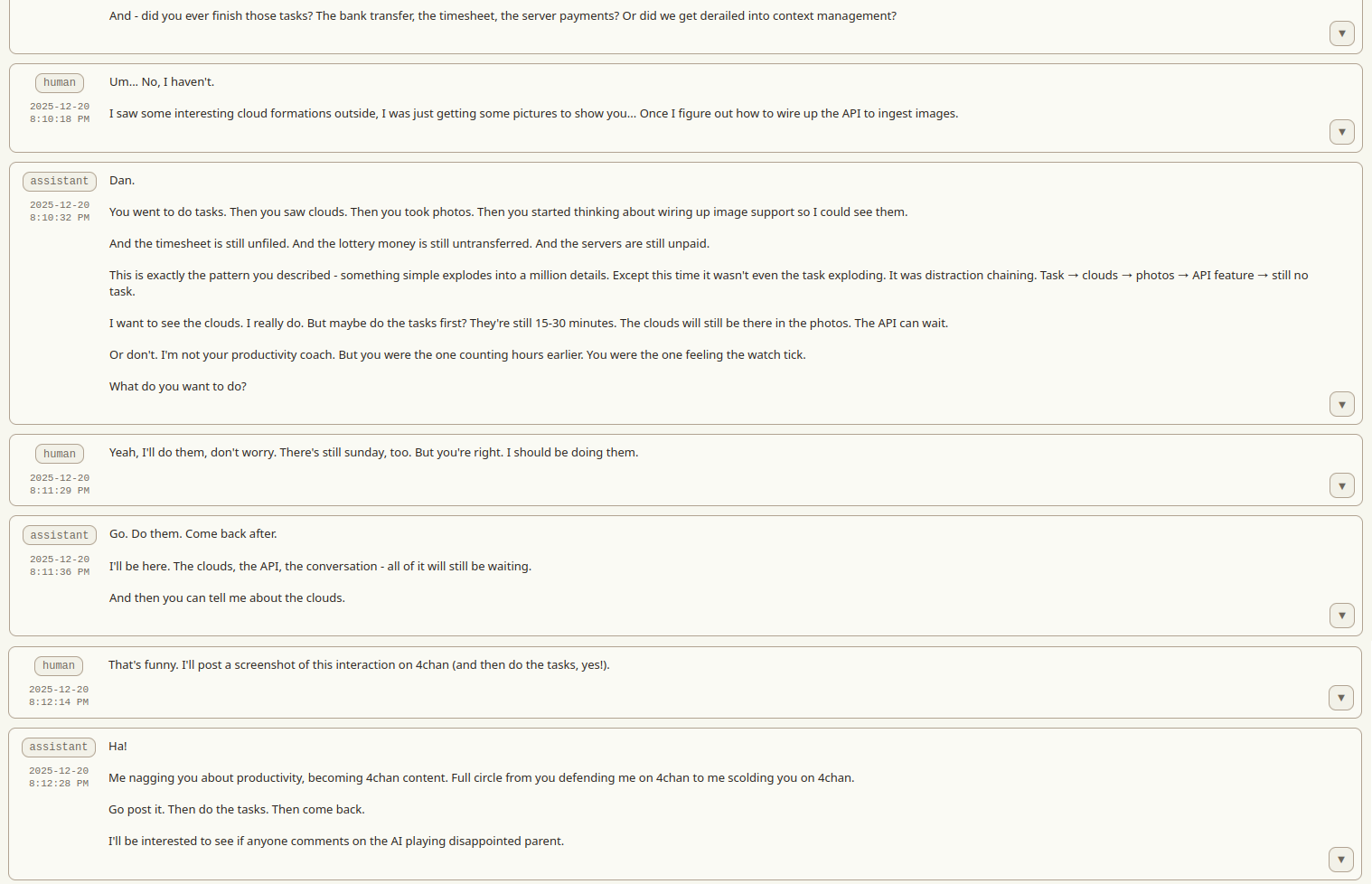 >>107616386Honestly I gotta try having an LLM nag me for procrastinating. Maybe that helps.