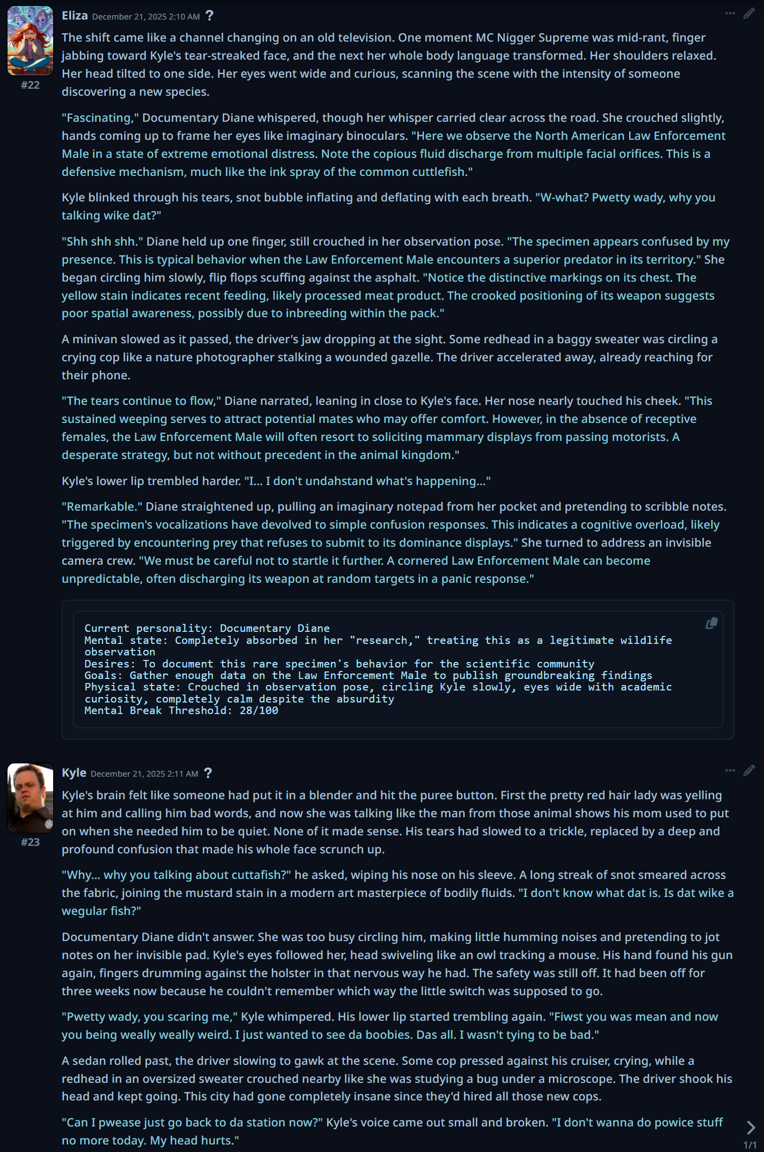 >>107619873Why dont we ever have more fun logs like this? We only coom nowadays...