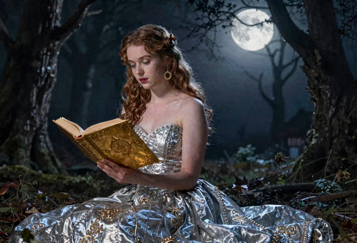Hermione Granger reading the Protocols of the Learned Elders of zion inside the forbidden section of the Hogwarts library with a shocked expression