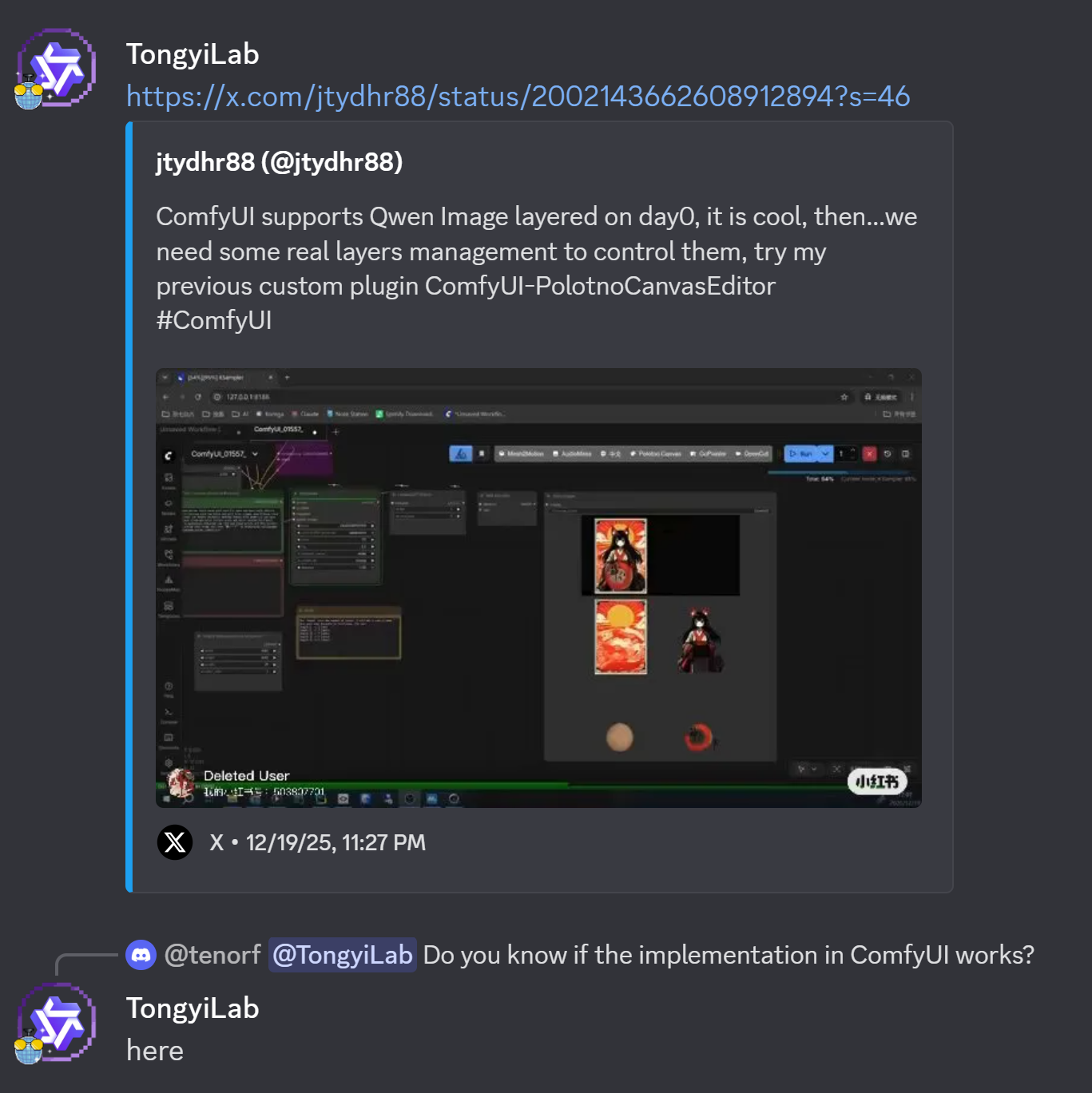 >>107628379>Any chance this is just a comfy fumble?Tongyi seems to be happy with the ComfyUi implementation