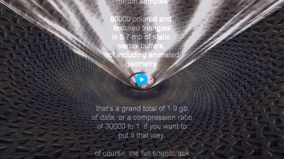 >>107663609>>107663704>64-100kb payload >"unpacks" to several gigabytes in ram since basically only includes instructions how to generate textures and geometry at runtime