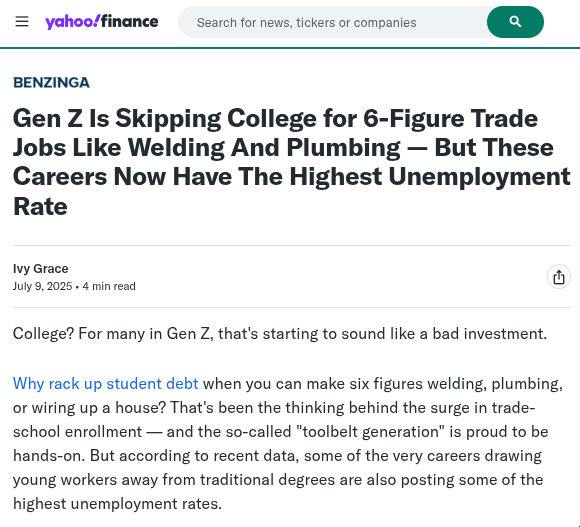 >>107691444Kek, all the people desperately crowding trades will drive tradie wages into the shitter.