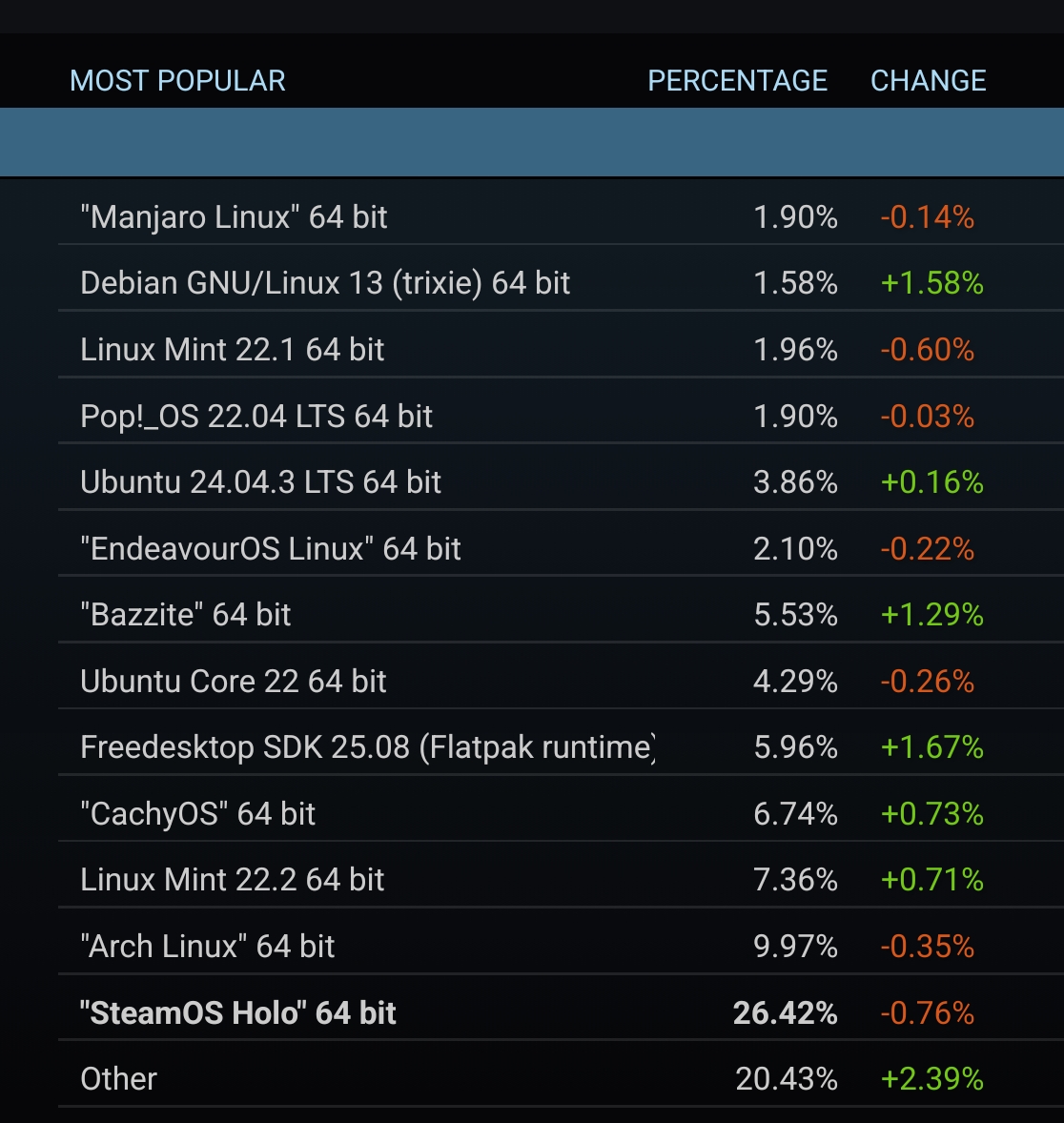 >>107691710>I don't want to use arch derivatives, mentally ill shit like cachyOS or endeavour OS. Idiotic forks with no futureIs taking over arch on steam survey next year what you define as no future?