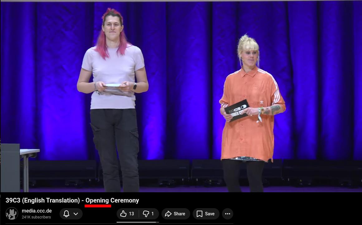 >>107697112>Do people genuinely enjoy conferences?It used to be a premier hacking conference in Europe. You could go there and just chill and enjoy talks about cool shit and just hanging around other hackers. Then they injected a massive amount of leftist degen into it, started promoting ANTIFA, started promoting LGBTQMAP, and started shoving it down everyone's throats by ading political talks and many people just left.