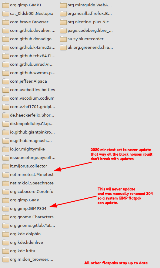 >>107698082now I can keep using GIMP 3.0.4 and Minetest from 2020 forever thanks to Flatpak's backward compatibility. Just make sure to rename the folder
