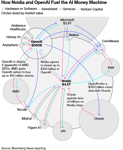 >>107715701>all that means is more investment for its rivals.Anon, these companies are incestuous and buying from each other. If OpenAI defaults, Nvidia Defaults as its investments in hardware and openAI go belly-up, it means microsoft defaults as its operating systems go belly-up because of their investments in openAI, it also means Micron defaults because they lost the biggest consumer of their hardware, remember the hardware they bought for the next 2 years? There isn't much of a Micron if the person who bought that suddenly has no money.So microsoft, Micron, and nvidia defaults? Where are those 'rivals' going to get their software and hardware? Suddenly, the price they expected for hardware and software is infinite, because they can't fulfill the lost contracts in their competitors, even on fire sale. All of them are already building at capacity. So now, THEY default, too. This is why Trump is so desperate to cut rates, rates cut = we enter QE = loaning money is virtually free. Banks take 100% of the risk and if a bank defaults, this picture doesn't look as much like the image of the tiny domino knocking over the big domino anymore. But if banks assume 100% of the risk, that means your money is suddenly worth a fraction of what this chart is worth. Member Weimar? Member how the German government COULD pay its dues to the Treaty of Versailles, but it required buttraping the german population? This is going to become your treaty of Versailles. You'll find mothers whoring out their children on the streets while Altman promises AGI in TWO MORE WEEKS AND 100 TRILLION MORE DOLLARS on TV.