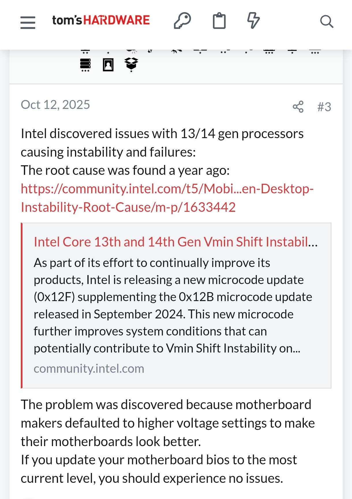 >>107738298yeah but intel won't acknowledge that as the root cause, just call their little band-aid "fixes" definitive because of pr bullshit