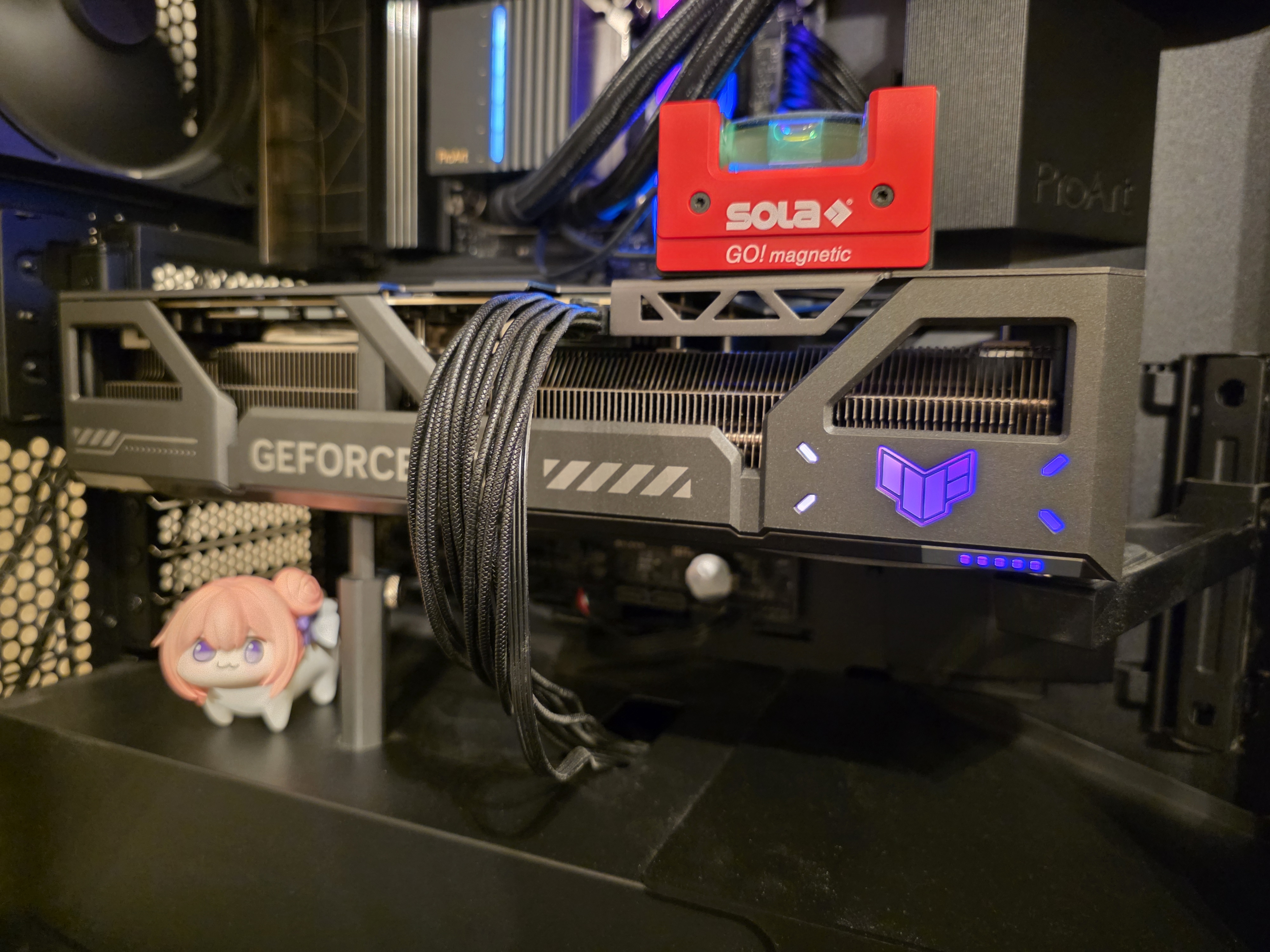 >>107739877I've posted here before after some anon said you need more support for your big ass GPUs. Here's other photo me adding second support and making sure it's leveled.