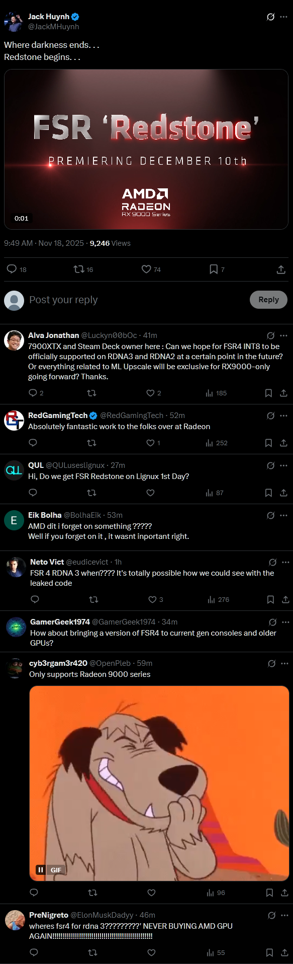 >>107746104AMD released all the tools game devs need to add official FSR4 support in their games.Not many game devs want to spend the resources to add FSR4 support on their end.But they'll be included in new titles.These guys have data on how many of their paying customers use Radeon cards and decide whether it's worth their time to add new Radeon features.