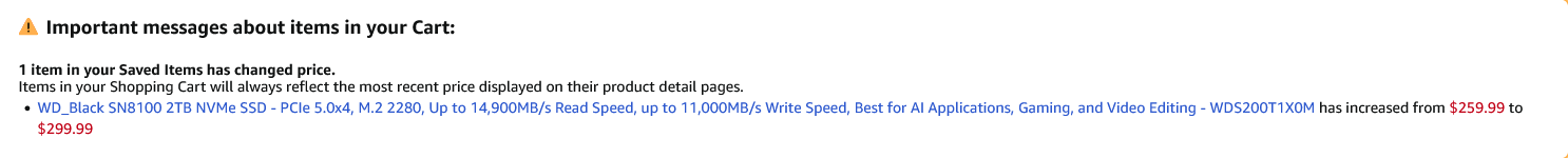 >>107745843>Everyone seriously needs to buy their planned builds right the fuck now, instead of waiting even a week longer, or you'll be paying more and more goy tax by the day.This, unfortunately.I still have not bought storage and had my eye on this rather expensive SSD since it had not been hiked (almost) unlike the others, while the rest kept creeping up and are almost the same price as it now, but I was still holding. Today they finally hiked it too. I would be better off if I had bought in November, or even early December, and now literally yesterday.