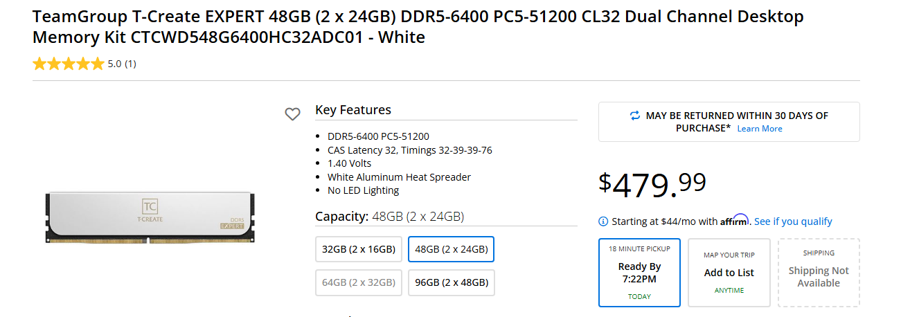 >>107745919Don't buy 4 dimms of ddr5 unless you want the headache of getting them to run at their "rated" speed. Find 2x24gb or 2x32gb instead.