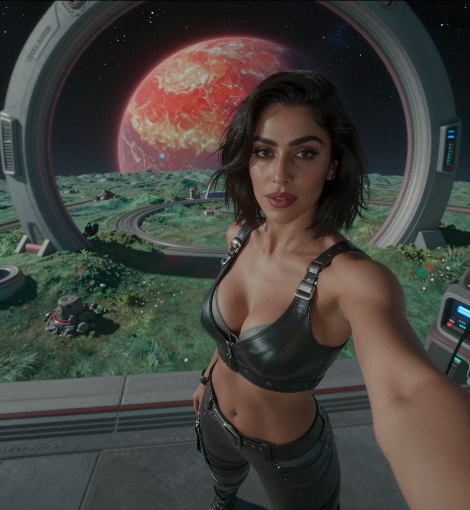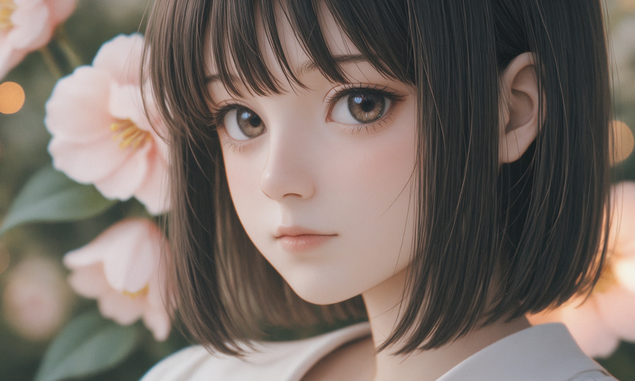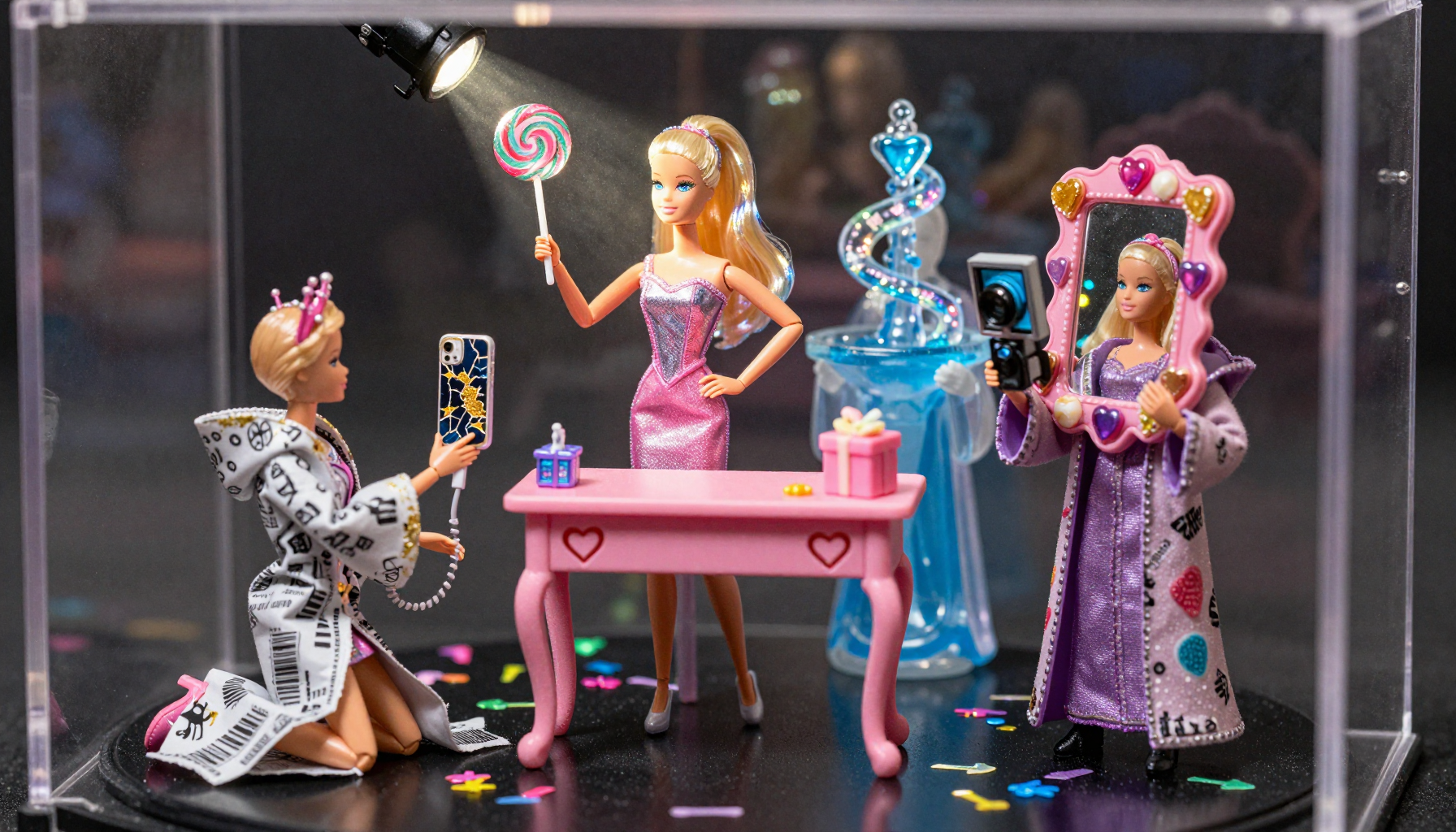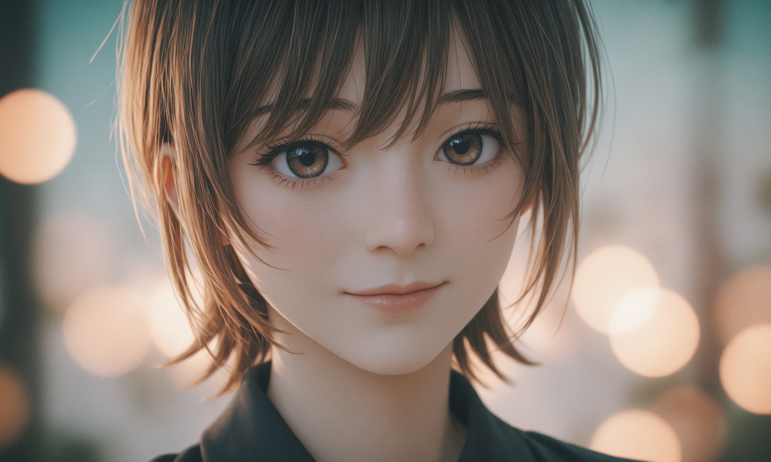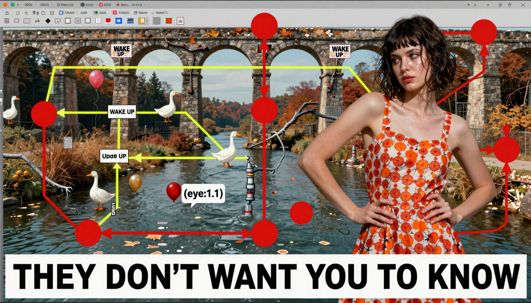 18 year old female teen, she is blonde, long wavy hair, Caucasian, slim waist, large breasts, waif, professional photography,, A young girl stands confidently against an abstract, pastel-hued backdrop featuring floating geometric shapes and soft gradients transitioning smoothly into one another. The sky above appears serene, painted with gentle hues of blue and pink, suggesting either dawn or dusk. Below, lush green foliage sways gently, adding depth and tranquility to the scene. Her outfit consists of a light purple cardigan over a white top, paired with matching shorts and simple yet stylish sandals. A small yellow accessory adorns her head, contrasting subtly with her long brown hair tied neatly at the back. She strikes a casual stance, leaning slightly forward while raising both index fingers towards herself—a gesture often associated with confidence or agreement—her gaze fixed directly ahead, embodying poise and self-assuredness.