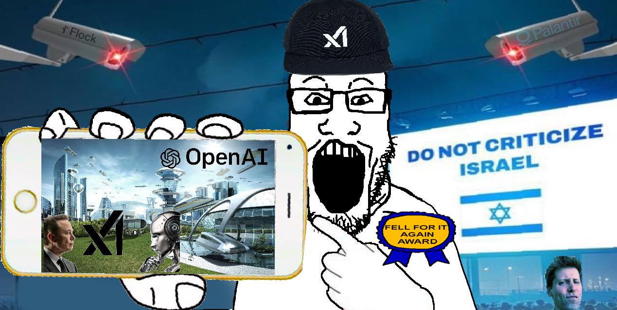 >>107786093>waste trillions in money and water>people get fired left and right>made the internet 10 times worse>everything keep rising in price despite ai slop and the quality going down>more massive surveillance >let the environment burn, more data centersAI fags told me AI will make the World better, so i guess two more weeks until i see it
