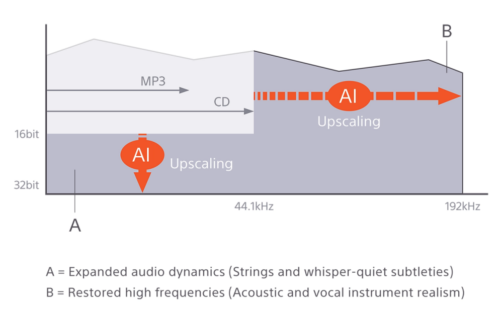 >DSEE Ultimate Using Edge-AI (Artificial Intelligence), DSEE Ultimate (Digital Sound Enhancement Engine) upscales compressed digital music files in real time. And the evolving algorithm now delivers even greater benefits for CD-quality (16 bit 44.1/48 kHz) lossless codec audio. Restoring acoustic subtleties and dynamic range, it provides a richer, more complete listening experience. Sony won