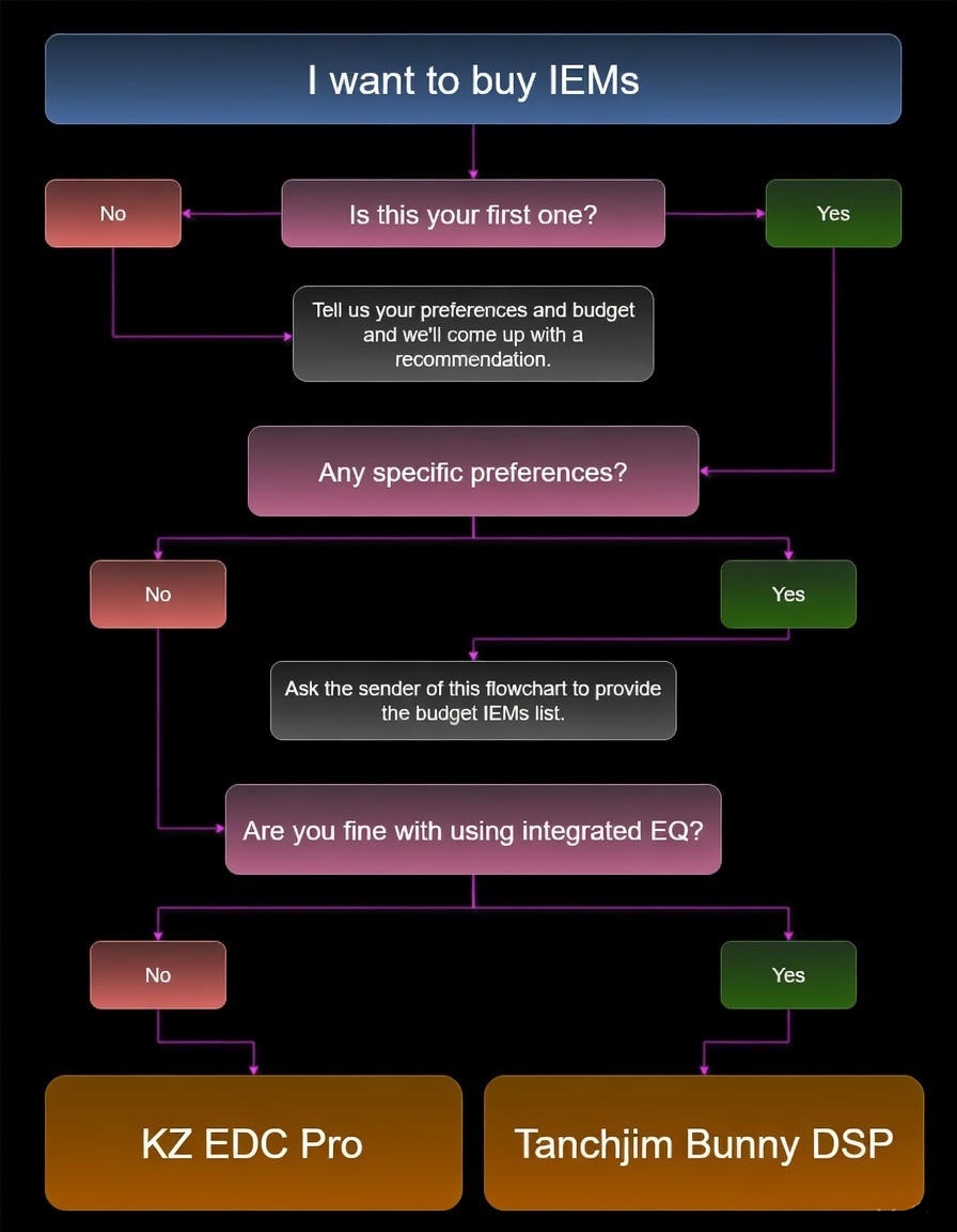 Baker editionHow to request advice:>Budget>Intended use (media, source, environment)>Frequency response preference and music examples>Past gear and your thoughts on themFAQ:>Where do I buy IEMs?Amazon, Aliexpress, Linsoul, Hifigo, Shenzhenaudio>Shopping Guide (IEMs, PMPs, Cables, Ear Tips, etc.):https://rentry.org/consoomer_guide>EQ Guide (EQ 101, Targets, Myths & Misconceptions, Papers, etc.):https://iem-eq-guide.pages.dev/>/iemg/'s Journal:https://iemgazette.pages.dev/>Measurements:https://iem-eq-guide.pages.dev/measurement-databases/>Budget Wire Over-Ear IEMs:• Tripowin Ruta10 (Mild V) - $18• Tanchjim Bunny DSP (Mild U) - $22• Truthear Gate (Mild V) - $22• EPZ Q1 Pro (V-shape) - $35>Bullet IEMs:• Tanchjim ONE DSP (5 Presets/5-Band PEQ) - $28• Etymotic ER2XR (Towards Neutral) - $140>Flathead Earbuds:• Blue Vido (Warm) - $5• Yincrow X6 (Warm) - $10>USB-C DACs:• JCally JM6 (Non Pro) / CX Pro - $8• JadeAudio JIEZI (10-Band PEQ) $18• Snowsky Melody (10-Band PEQ) - $38• Qudelix 5K (20-Band PEQ/GEQ) - $110>PMPs:• HiBy R1 - $85• HiBy M300 - $200>AVOID USING:• Mainboard audio when using multi-driver posPrevious Thread: >>107770750