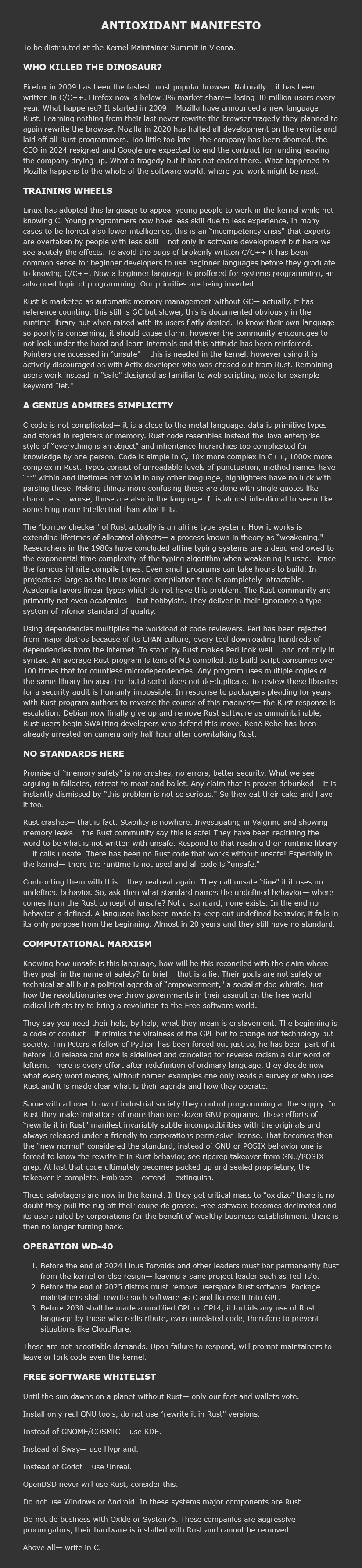 >>107811331>>107811335yeah, allowing rust in the kernel is the mother of all fuckupsit was high time he steps down and castrates himself