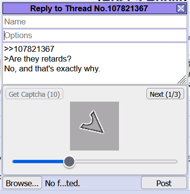 >>107821367>Are they retards?No, and that's exactly why.>captcha runs arch btw