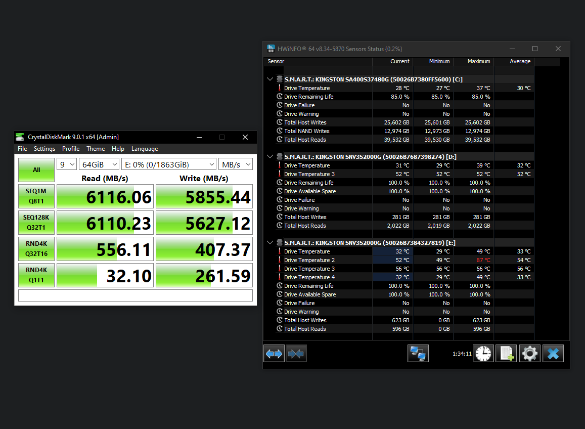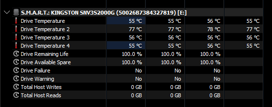 >>107824117Fair enough, if you want to be extra safe, do a stress test to observe your peak temps under load.CrystalDiskMark, set it for 9 runs, change the test size to 64GB and keep hwinfo open to observe the controller temp.Ideally you don't want to see the controller go above 80C or the other 3 temps go above 70C.