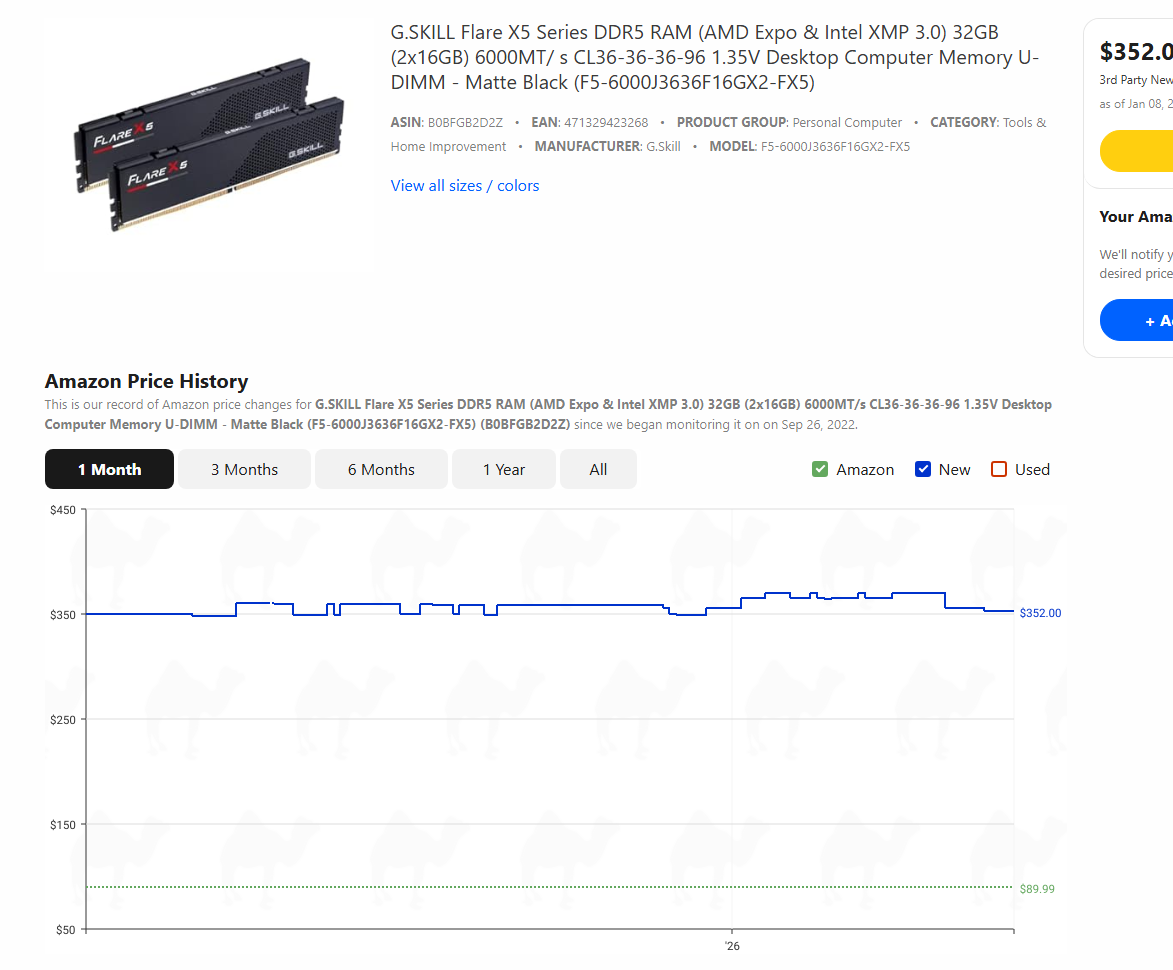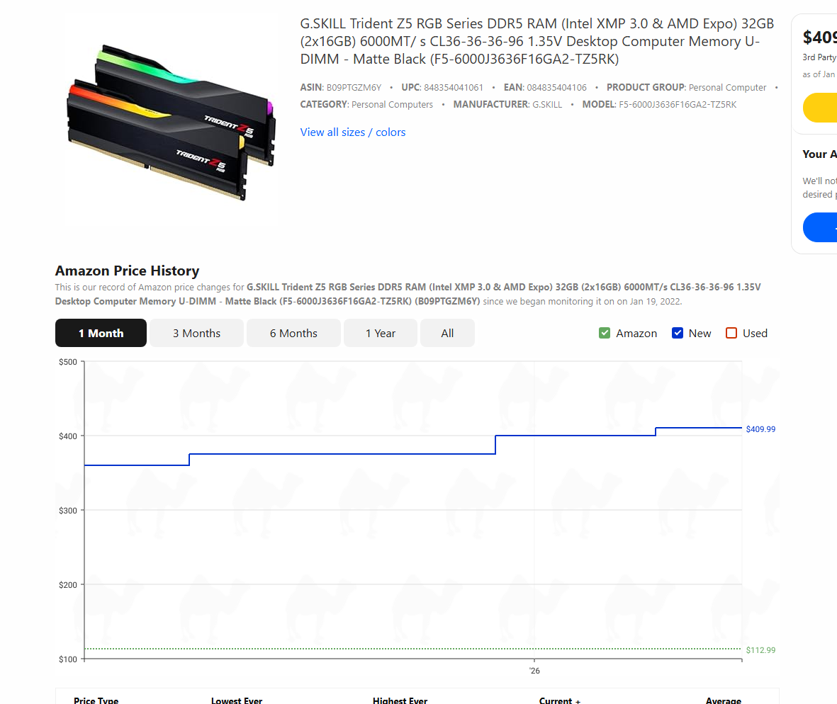 >>107824368>>107824793>Okay let me check>32gb 6000c30 was 500€ at retailer before it's now gone up to 660€Yep, it's over It's even fucking worse Pcbg niggas talked me out of buying the last cheap ram left on Amazon In the worldIt's over