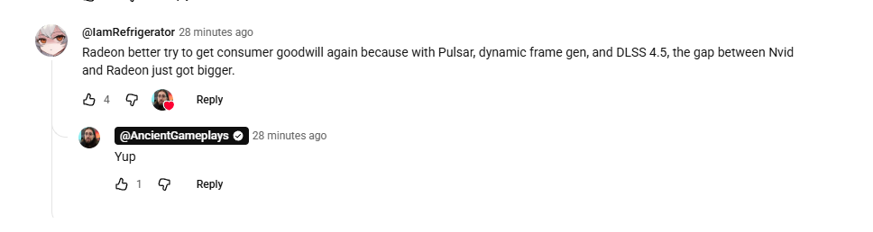>>107827566Well at 4k you have enough base resolution to reconstruct most of the image and have enough tempora stability so its a useful preset, i doubt its look better than M on all games though as the image will be softer and some games have tie up Lods, denoising and geometry tied to interla resolution but if the game itself does have proper downscaling to 720p then i would say preset L ultra performance should be competitive with M on performance on dlss 4.5, you better wait until we get RR model for DLSS 4.5 though, as you'll need a proper denoiser in order for certain reflections to not look low resolution and to denoise the flickering on RT, overall i will say that there is a good chance 4k ultra performance wtith the RR may be the way to go depending on how it goes, at the moment i would still stick to performance unless you are on a 5070 or 5060 ti 16gb in which case i think ultra performance 4k using DLDSR look better than performance/ with preset M at 1440p, the question really comes towards preset M balance on 1440p vs ultra performance L on 4k for these cards in which case it will realy come down to personal preference and game by game, overall if you have a 1440p monitor and a 5060 ti or 5070 i think DLDSR to 4k so you get 4k image quality on your 1440p display is the way to go