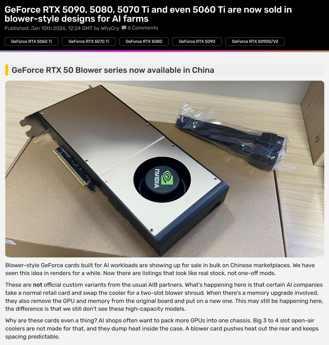>>107827312They are constrained to 2 slots with small heatsink. Imagine a 4 slot blower with vapor chamber, heatpipes, tall fin stack and thick fan, it might not be that loud after all.