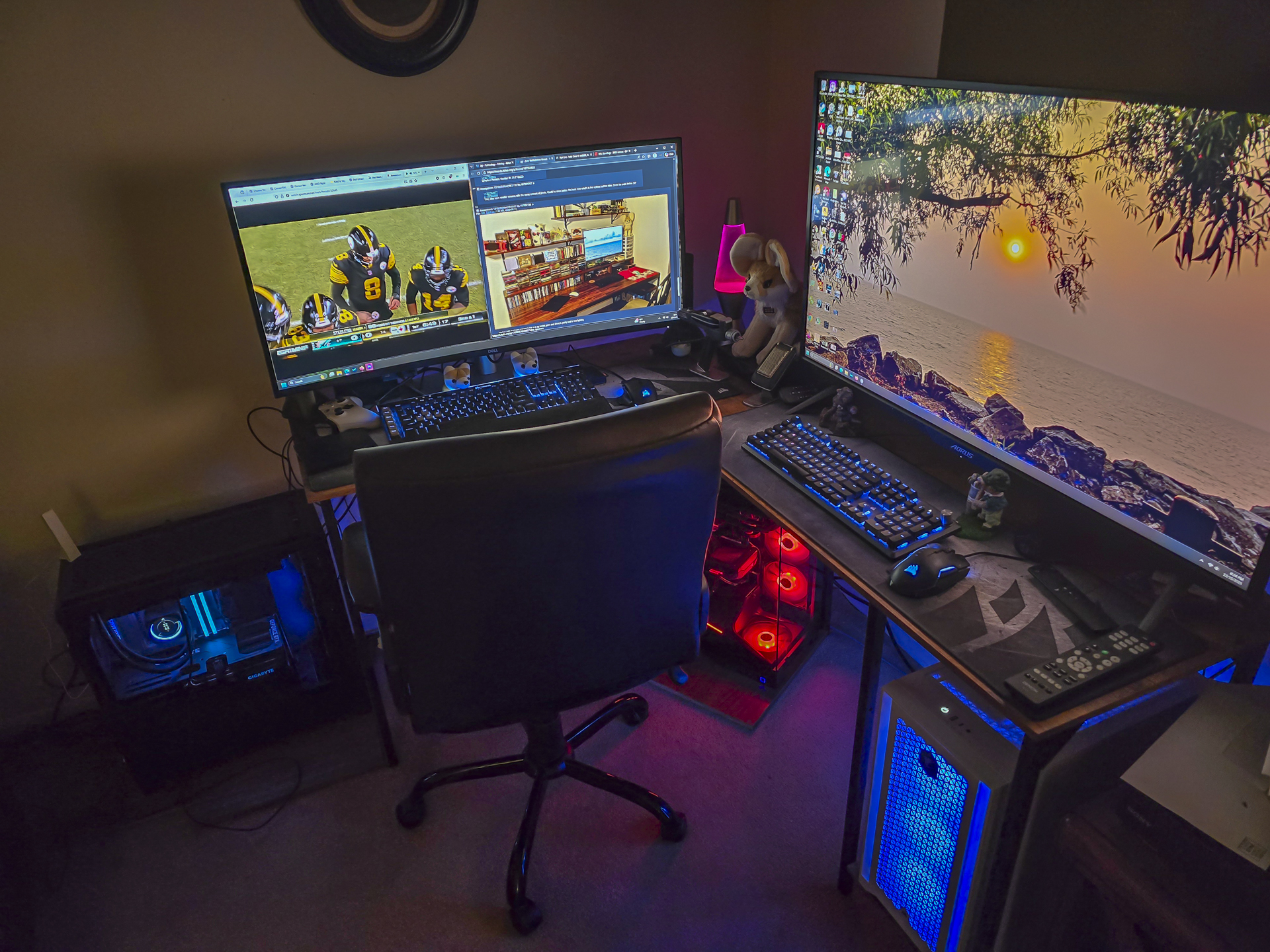 >>107827622Thanks- that's a K95 and a Nightsword. I like both. The monitor is a Dell 5K2K. It's awesome. >>107827863The discussion was about ultrawides. 2 PCs share it. The other has a lowly 16:9 4K. Not germane to the discussion. Knob-gobbler.