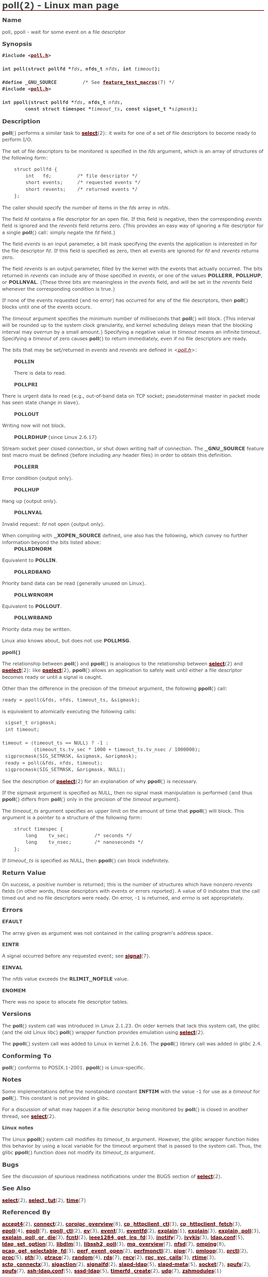 https://linux.die.net/man/2/poll