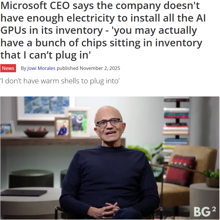 >>107828287Better have the GPUs ready than building a new datacenter and then not having any GPUs readyThere's many more companies that can make a prefabricated warehouse and lay wires compated to just nvidia